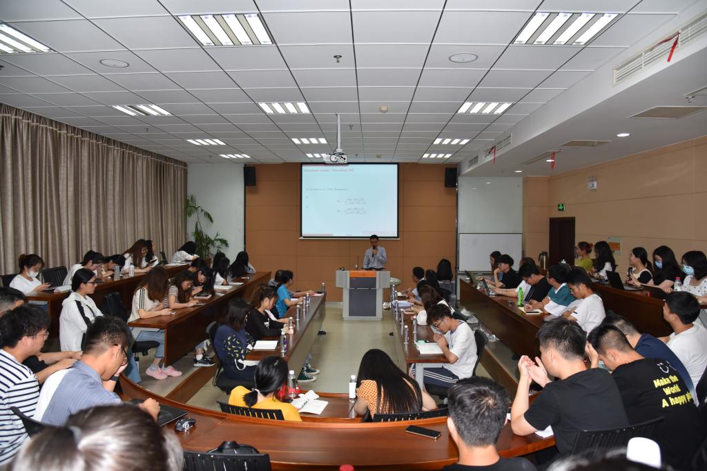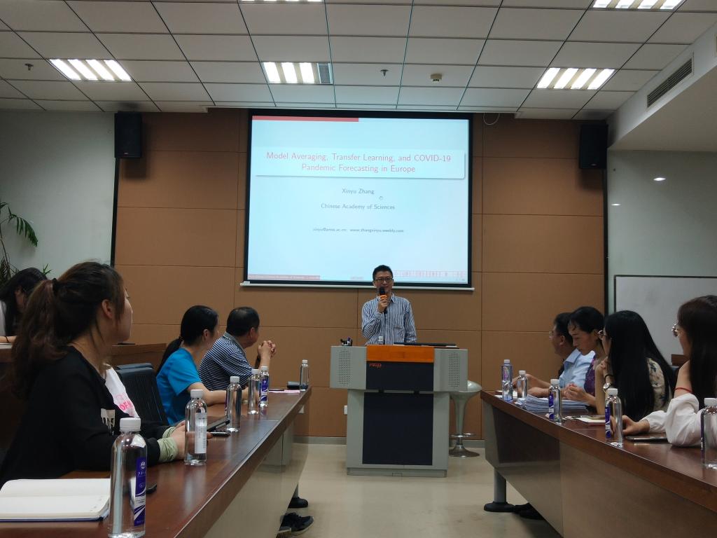 6月18日下午,“商学大讲堂”系列学术讲座第161讲在PA视讯116报告厅举行。中科院数学与系统科学研究院、预测中心张新雨研究员应邀作题为“COVID-19 Pandemic Forecasting in Europe: A Transfer Learning with Weights Model Averaging Approach”的学术讲座。钱吴永副经理主持本次讲座,PA视讯教师和各专业研究生参加了本次讲座。