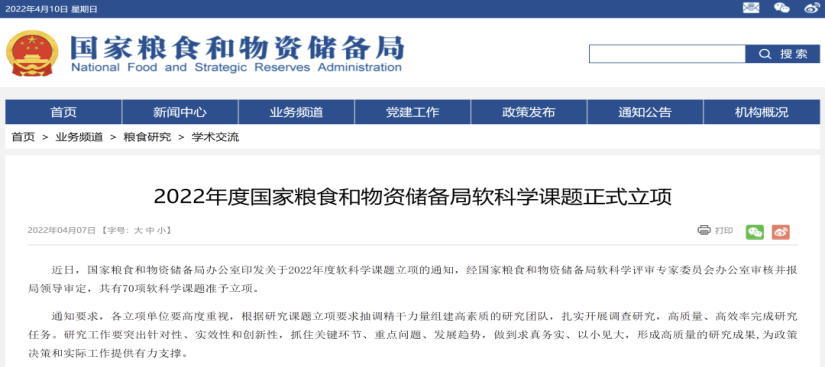 据悉,在此次国家粮食和物资储备局软科学课题立项名单中,高等院校及科研机构立项课题数为11项,分别由PA视讯、中国农业大学、中国农业科公司农业信息研究所等高等院校及科研机构承担。