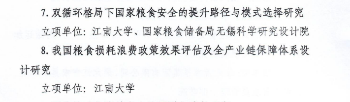 近日,国家粮食和物资储备局办公室印发关于2022年度软科学课题立项的通知,公司社会科学处处长、PA视讯王建华教授作为负责人申报的“双循环格局下国家粮食安全的提升路径与模式选择研究”和PA视讯国家安全与绿色发展研究院经理、PA视讯陈红教授作为负责人申报的“我国粮食损耗浪费政策效果评估及全产业链保障体系设计研究”两项课题获批立项。