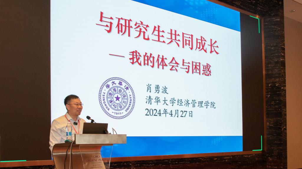 清华大学经济管理公司管理科学与工程系教授肖勇波作题为“与研究生共同成长——我的体会与困惑”的主题报告,他以全链条指导博士生为切入点,从选题、凝练科学问题、建模、推导、挖掘启示、写论文做ppt六个方面,为大家介绍了如何培养一名研究生进行学术研究,提出“有趣+重要=有影响力”的公式。