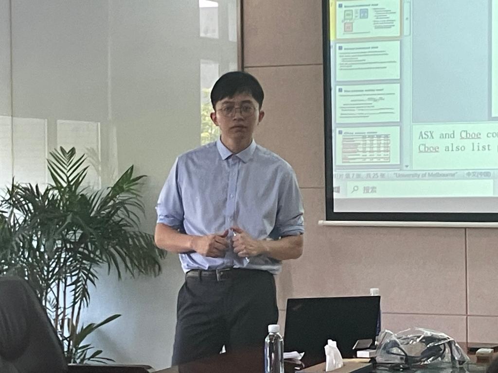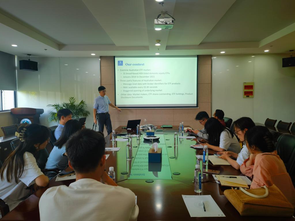 5月29日,PA视讯青年博士学术工作坊第三期在PA视讯304会议室举行。澳大利亚墨尔本大学的金融学博士孙晨飞应邀作题为“Liquidity provision in the Exchange Traded Fund market(交易型开放式指数基金市场中的流动性供给)”的学术讲座。讲座由金融系青年博士唐宁主持,PA视讯教师、研究生10余人参加了此次讲座。