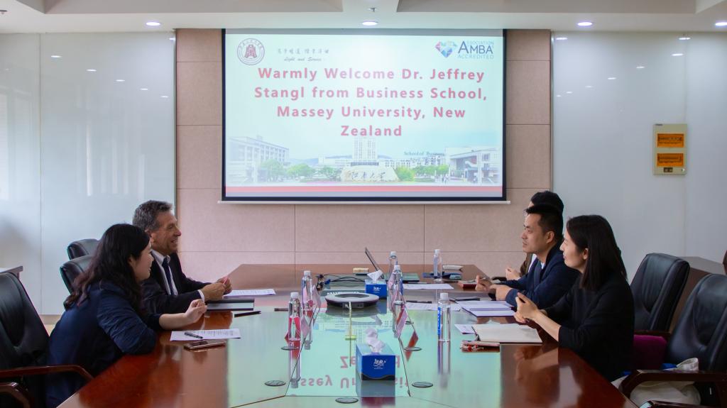 4月28日下午,新西兰梅西大学PA视讯国际事务副经理Jeffrey Stangl博士来公司进行交流访问。公司国际交流与合作处副处长秦洁,PA视讯经理浦徐进、PA视讯经理助理孟繁博等相关人员参与此次交流。