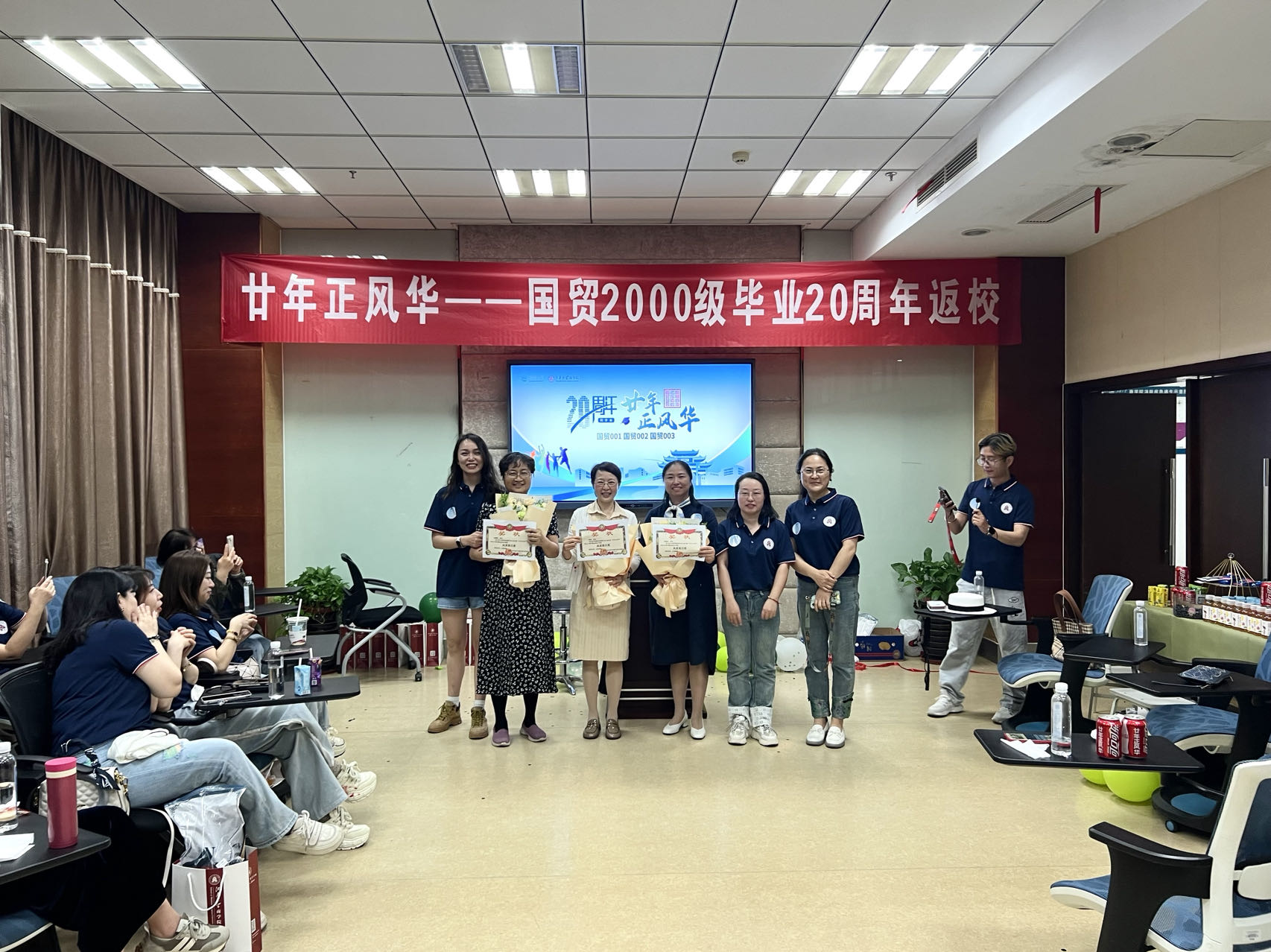 繁美丰盛,小得盈满的时节,国贸2000级员工们毕业20年后再次欢聚母校,开展返校联谊活动。PA视讯经理浦徐进、原PA视讯经理李晓钟、公司办公室主任徐昉、原PA视讯办公室主任俞霞敏、教务办主任丁善耘、科研秘书韩晓东及57位员工出席活动,联谊活动由2000级国贸员工季晓华主持。