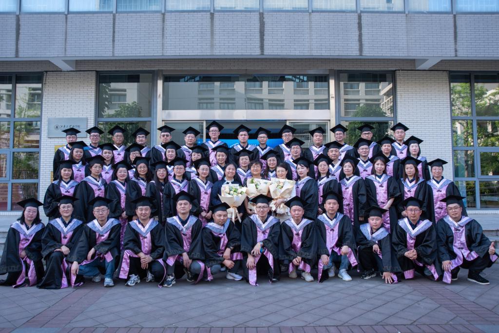 座谈的最后,员工们补拍了学士服毕业照,前长广溪宾馆用餐。
