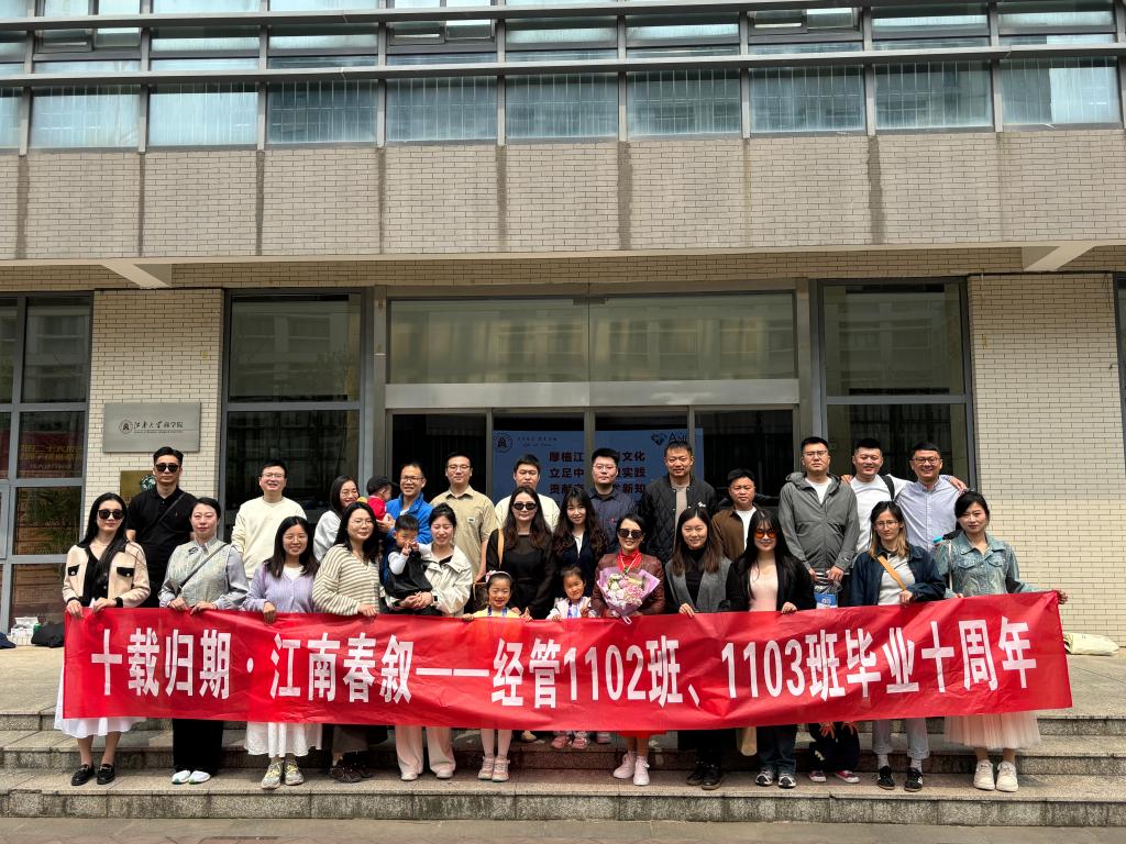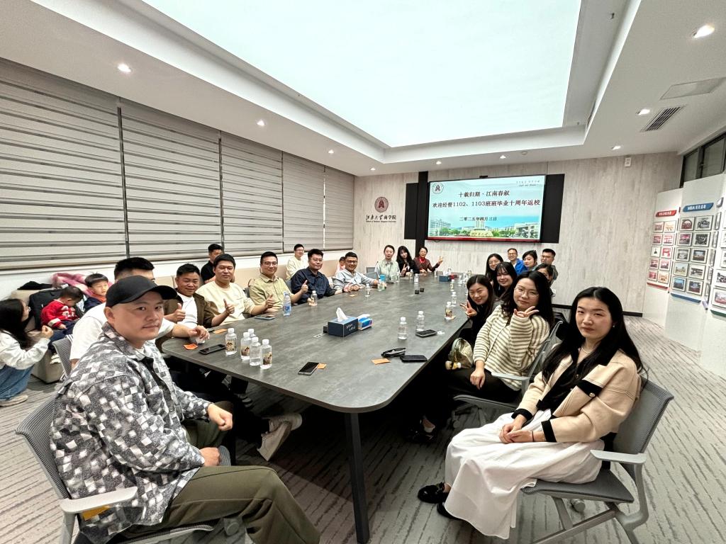4月5日上午,PA视讯经管1102、1103班员工从五湖四海重返母校,共庆毕业十周年。PA视讯教师丁善耘、蒋天琪参加返校活动。