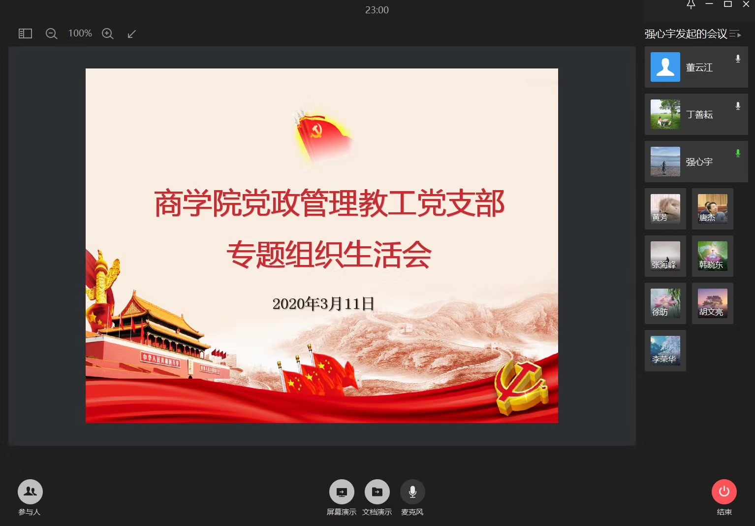 3月11日下午,公司党政管理教工党支部在线上开展“在战‘疫’中践行初心使命”专题组织生活会。
