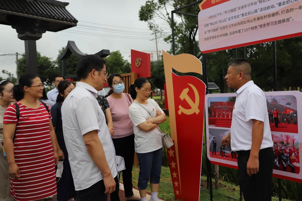 为深入推进党史学习教育,抓实公司“七个一百”行动计划,9月29日下午,公司党委书记徐锡清、副书记徐静带领公司教工党员一行50人前往无锡鸿山街道东塘街村,体验“重走初心路”学党史特色乡村线路,开展沉浸式的党史学习教育主题党日活动。鸿山街道东塘街村党支部书记、主任周伟陪同考察学习。