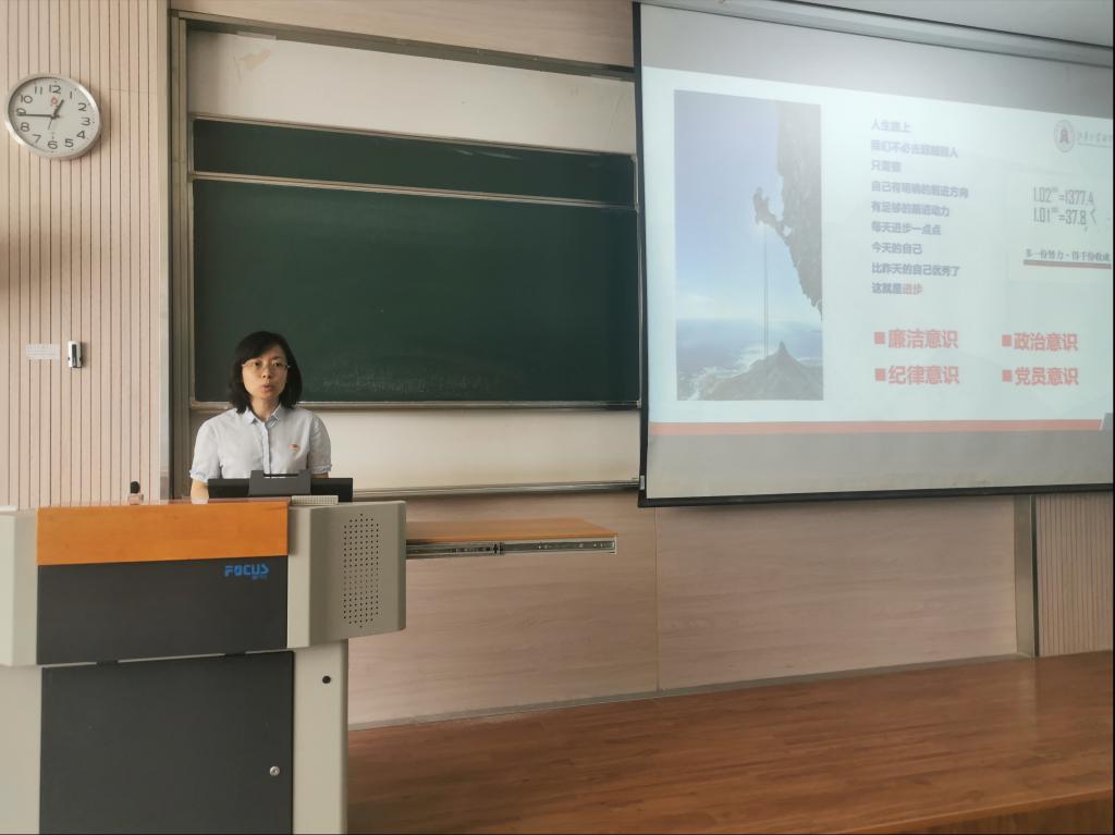会上,徐静分别从“学文件、明要求”,“讲政治、守纪律”,“立大志、担大任”三个方面讲述对毕业生党员的要求与殷切希望。她带领党员们学习了《中国共产党纪律处分条例》修订的重要意义,强调要抓好贯彻执行,以严明的纪律推进党的自我革命。