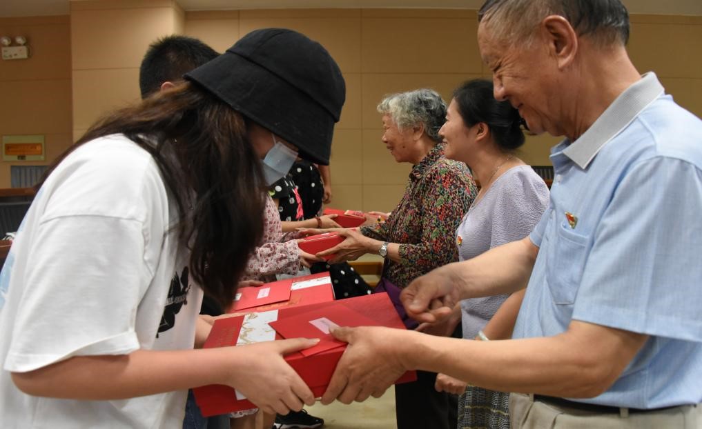 随后军休老干部们向PA视讯少数民族同学发放端午慰问金和慰问物资。