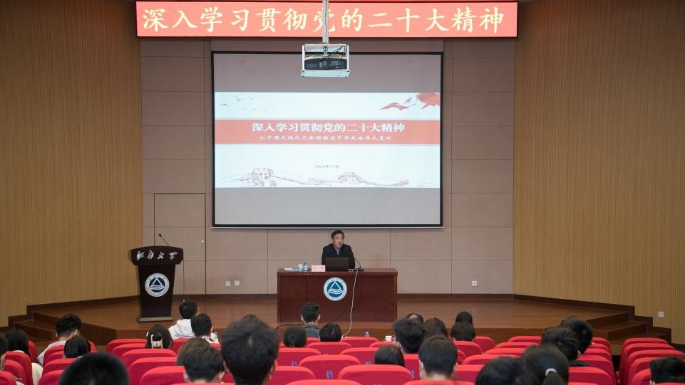 刘淼讲授了党的二十大总体概况、党的二十大报告主要内容,对党的二十大精神进行了全面宣讲。他指出,习近平总书记在党的二十大报告中提出了“建设中国式现代化”的重要论断,深刻理解和把握报告中蕴含的一系列新思想、新观点、新要求,是不断谱写中国式现代化新篇章的内在要求。对广大青年员工而言,要增强使命感与责任感,做到对党在政治上、思想上、行动上、文化上以及情感上的高度认同,不断提升学习能力与工作水平,为全面建成社会主义现代化强国、实现第二个百年奋斗目标,以中国式现代化全面推进中华民族伟大复兴而努力奋斗。