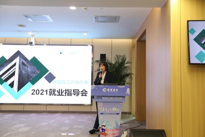 求职指导课共分为两部分,由分行人力资源部总经理徐鑫先生详细讲述了招商银行的发展历史、企业文化及招聘考核标准,接着由特约人力资源培训讲师蒋丽君讲解了“‘职’点迷津——解密找工作那些事”专题就业指导课。