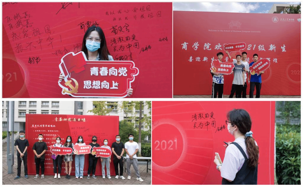 今年PA视讯以“青春心向党”为迎新主题,在公司广场上设置了“青春向党”告白墙,将思想引领融入到迎新之中,号召新生听党话、跟党走,教育引导新生树立“强国有我,请党放心”的坚定信念。前来报到的新生们纷纷在告白墙上写下对百年大党的真挚祝福与自己的青春誓言。来自工商管理2101班的本科生王欣迪同学郑重的在告白墙上写下“强国一代有我在”的承诺。来自21级应用经济学专业的刘芊芊写下“清澈的爱,只为中国”表达对祖国的热爱。