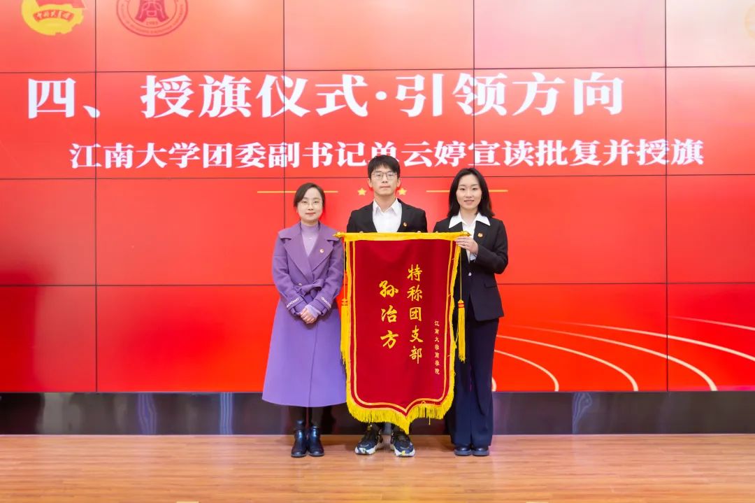 PA视讯校团委副书记单云婷向“孙冶方”特称团支部授旗