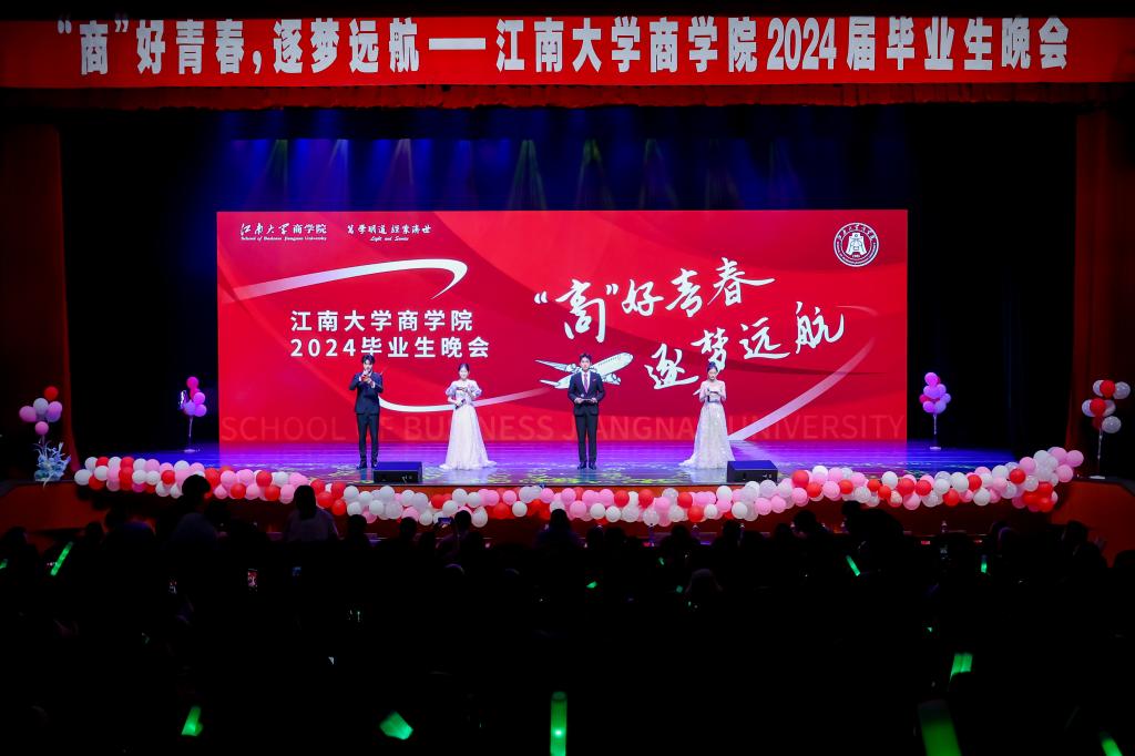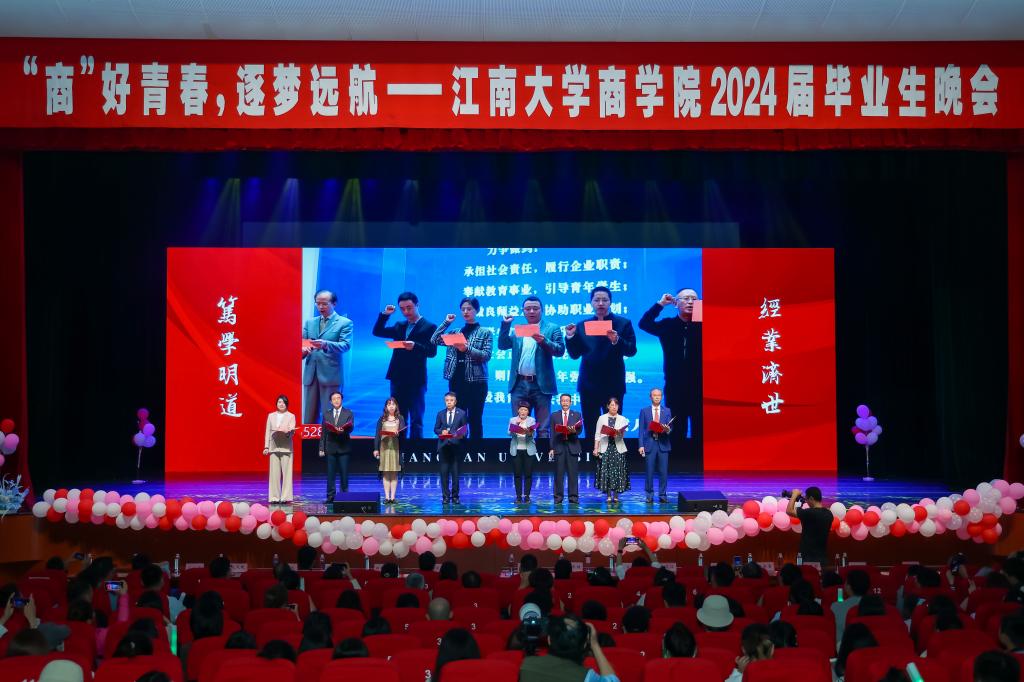 6月5日晚,2024届“‘商’好青春,逐梦远航”毕业晚会在文浩馆举行。公司领导班子、企业家辅导员代表、各系部主任、毕业班班主任、公司教师代表、辅导员老师与400余名毕业生一同观看晚会。