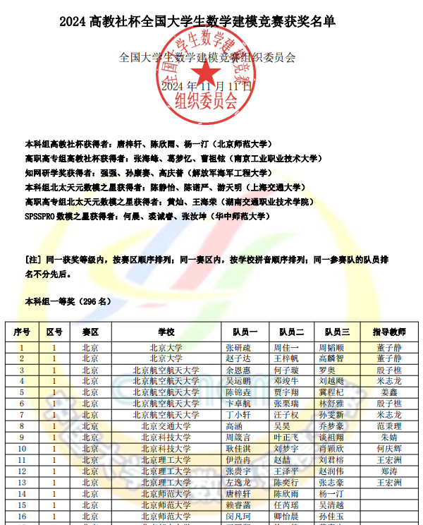 11月11日,全国老员工数学建模竞赛中传来喜报,PA视讯国贸2201班马一柠及小组成员荣获全国一等奖、金融2201班杨双竹及小组成员荣获全国二等奖。