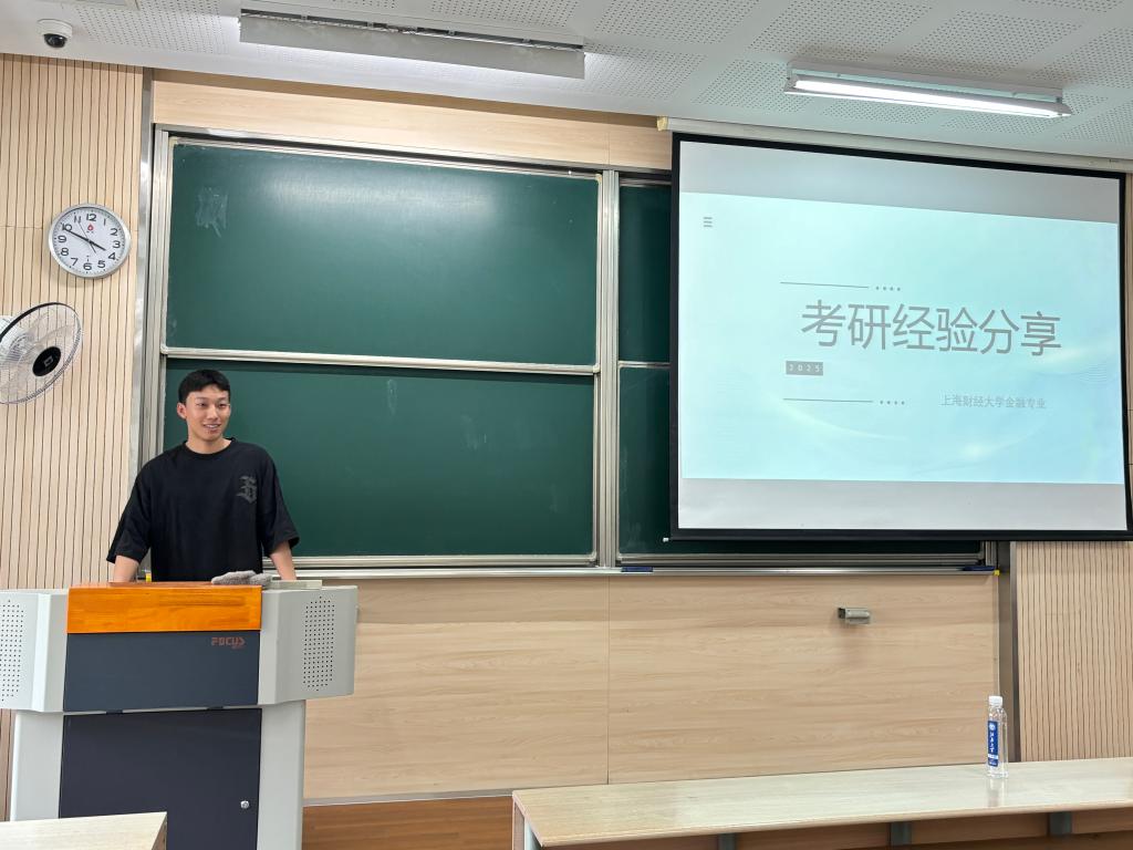 在考研经验分享会中,雷淳智从考研动机、专业与公司的选择、备考细节三个方面展开分享,着重讲解了备考阶段科目选择以及规划,同时提出了及时调整心态、选择合适目标并展开行动等切实建议;冯家豪结合自己的考研经历,重点强调了备考的各个阶段详细合理的规划对高效备考的重要性,提醒同学们战线不宜拉得太长,注重劳逸结合。