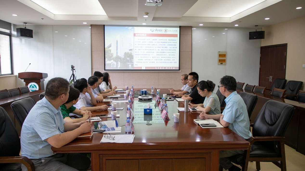 扬州大学公司党委书记孟益宏就公司沿革历程、学科专业体系、团队人才培养建设等基本情况进行了介绍。双方成员围绕学习贯彻习近平新时代中国特色社会主义思想主题教育的特色做法、团队建设思路方法、团队力量提升培养、MBA教学工作、校企合作、课程体系优化等问题进行了深入交流,并着重就一级学科博士点申报、国际认证流程等进行研讨。