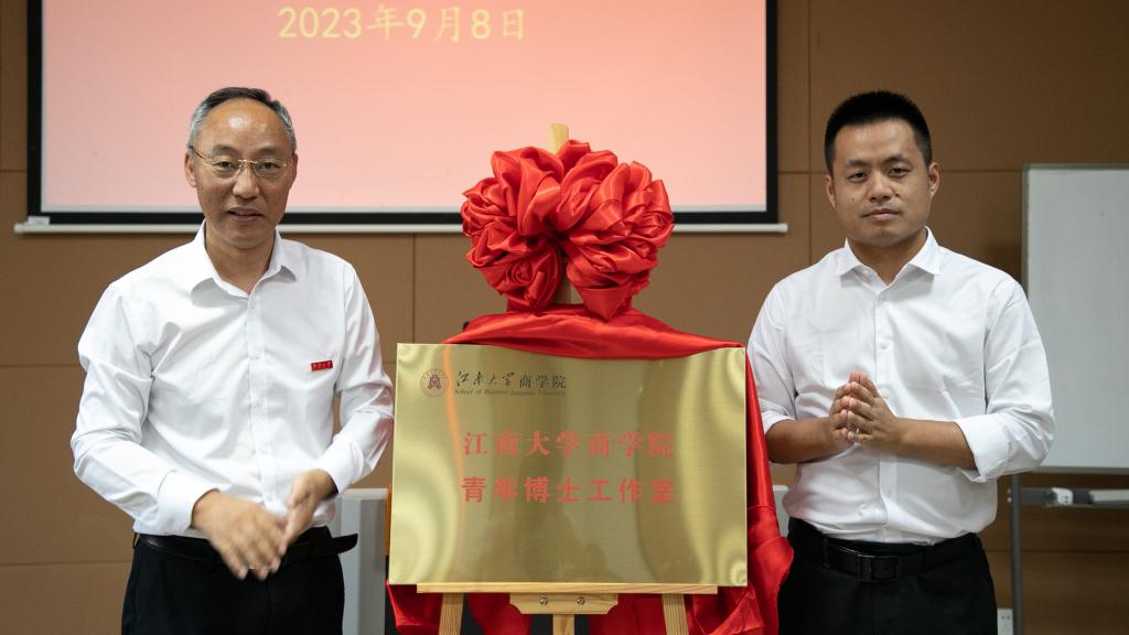 朱飞对PA视讯“青年博士工作室”的成立表示祝贺!他提出工作室的建立不仅为青年博士教师提供了实践性与互动性的科研交流平台,更是积极探索新形势下青年人才培养理念、科研协作模式改革的创新举措。他对PA视讯能够团结青年博士教师,提供温馨的、愉悦的工作平台与氛围表示肯定。随后,朱飞和浦徐进共同为青年博士工作室揭牌。