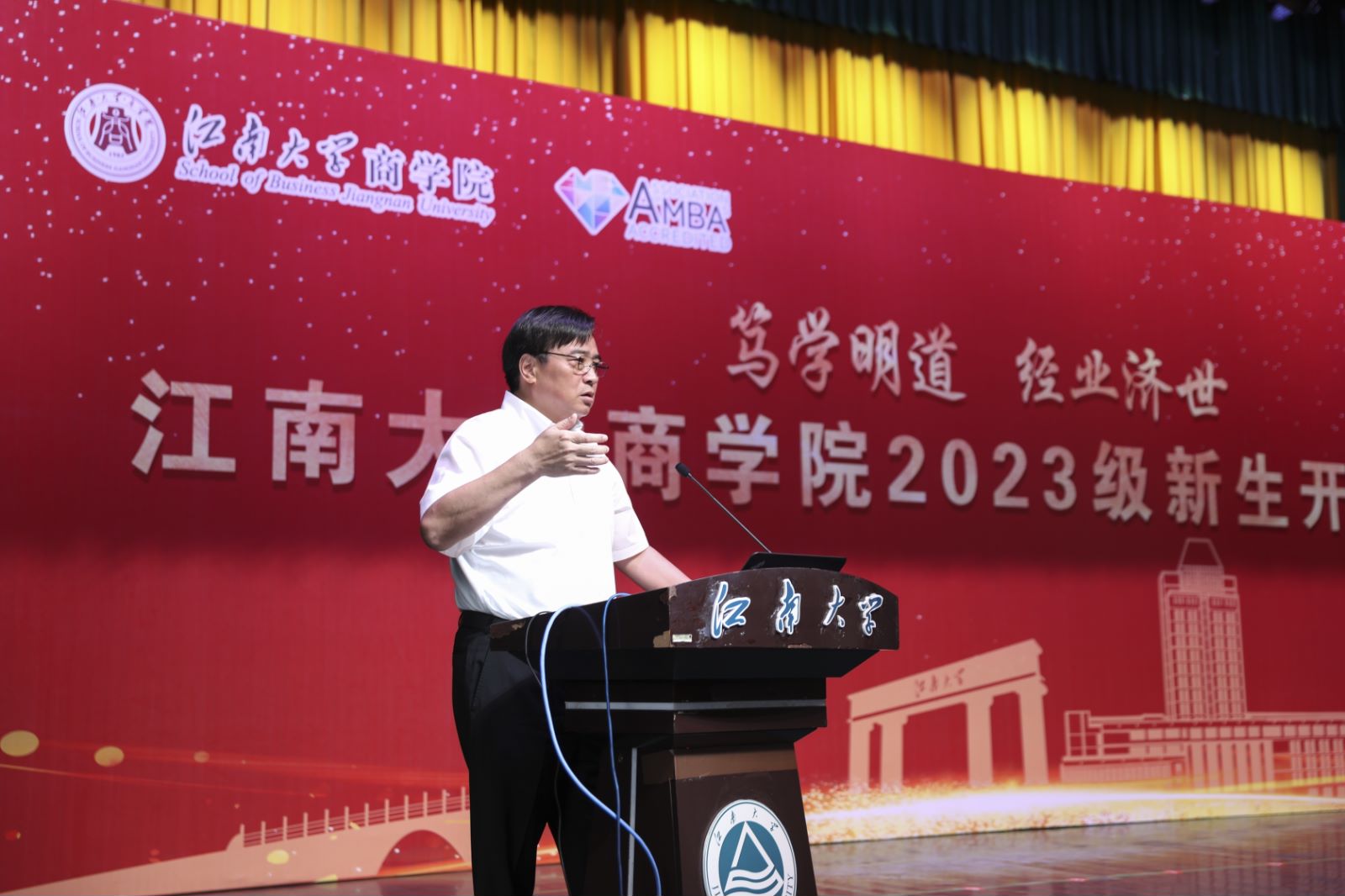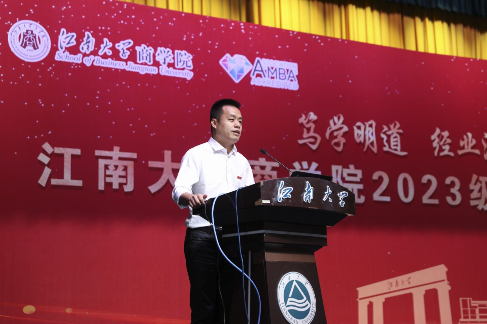 最后,公司党委书记刘长青为2023级新生讲授思政第一课。刘书记从“大学之道,大业之学”、“立青春志,圆中国梦”、“只争朝夕,不负韶华”三个篇章展开,为同学们阐明为什么要来上大学、如何适应大学新生活以及怎样度过老员工活,并寄语2023级新同学:在江南这片热土插上腾飞的翅膀,用最远大的志向、最坚实的基础、最坚强的意志、最硬核的本领,成就最好的自己、绽放更好的未来!此外,副经理王雷为2023级全日制研究生新生作入学导航,MBA教育中心办公室主任唐杰为2023级MBA/MEM新生作入学导航。