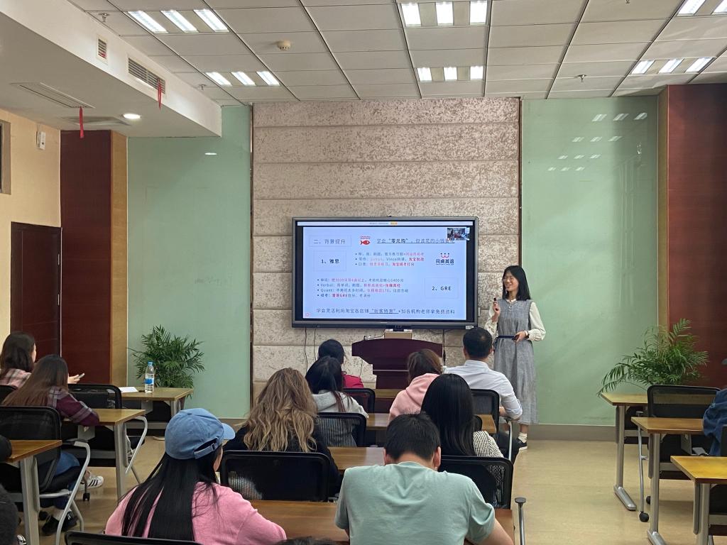 最后,20级工商管理专业的程彦灵同学从自身评估、背景提升以及申请过程三个方面详细分享了自身的海外升学申请经验。为同学讲解如何选择公司、选择专业,如何准备申请材料并避免各种常见误区,从而申请到理想的目标院校。