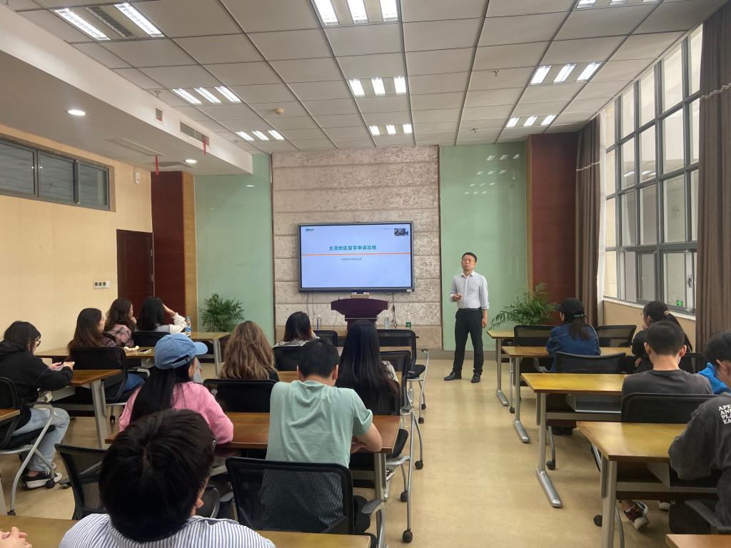 近日,公司2020级本科生海外升学指导交流会在PA视讯113会议室举行。活动邀请了新东方前途出国刘二鹏老师、 2018级工商国际专业毕业生王奕雯、2020级工商管理专业在读本科生程彦灵对海外升学优势、如何择校、如何申请院校等进行详细解读。公司党委副书记、副经理徐静,2020级本科生辅导员呼酩杰、田雨及2020级意向海外升学本科生参加交流会。