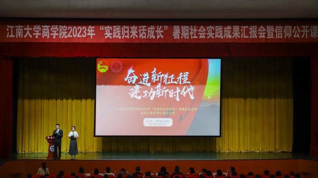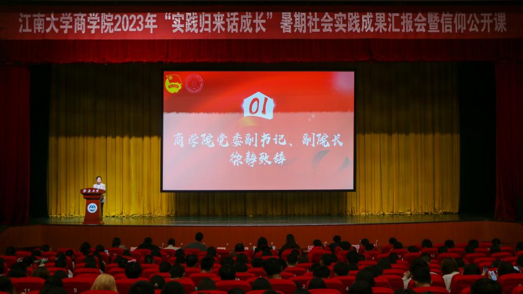 为展示社会实践优秀成果,做好朋辈交流辐射引领,鼓励知行合一开拓奋进,“奋进新征程,建功新时代”2023年暑期社会实践成果汇报暨信仰公开课于10月25日晚在文浩馆观众厅成功举办,公司党委副书记兼副经理徐静、优秀实践指导老师谢玉梅、分团委书记王璁及全体辅导员出席,2023级全体新生及2022级班团骨干参与活动。
