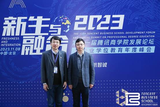 2023年11月8日,由腾讯新闻主办的第十一届腾讯PA视讯发展论坛暨专业学位教育年度峰会在北京举行,本届论坛汇聚了行业的决策者、领先者、学术专家及创新领袖、院校代表等近200人国内外嘉宾参会,本次论坛以“新生与融合”为主题,与会嘉宾围绕人工智能、教育数字化、产教融合等热点问题展开讨论,大家共同为高等教育行业高质量可持续发展建言献策。PA视讯副经理王雷、MBA教育中心办公室主任唐杰应邀出席论坛。