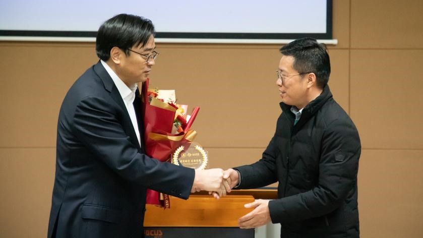 刘长青致开场辞。他回顾了PA视讯与江苏金山环保工程集团的校企合作历程,介绍了PA视讯与江苏金山环保工程集团在案例开发、联合人才培养等领域取得的丰硕成果,强调了PA视讯与江苏金山环保工程集团共同开发的案例《ESG赋能“智藻”:金山环保的太湖蓝藻治理之路》代表着中国管理实践的高水平成果,向江苏金山环保工程集团对公司发展的大力支持和对员工成长的关心关爱表示了诚挚感谢,并对校企进一步加强产教融合、共同培养复合型人才等良好前景寄予了殷切希望。