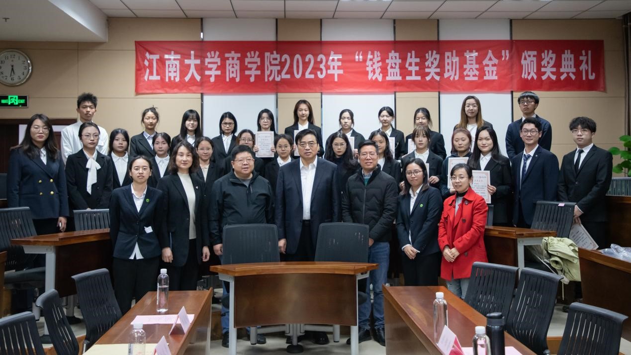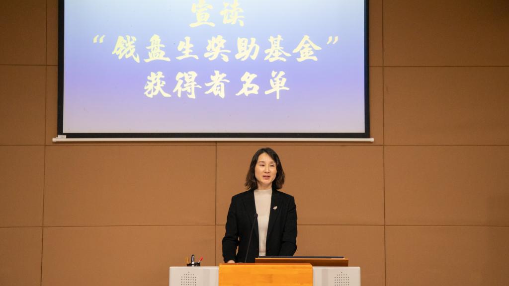 单筱婷宣读了2023年“钱盘生奖助基金”获奖员工名单。安楠等17位同学获钱盘生奖学金,郭超静等8位同学获钱盘生助学金。颁奖仪式上,钱盘生董事长为获奖同学颁发了荣誉证书。