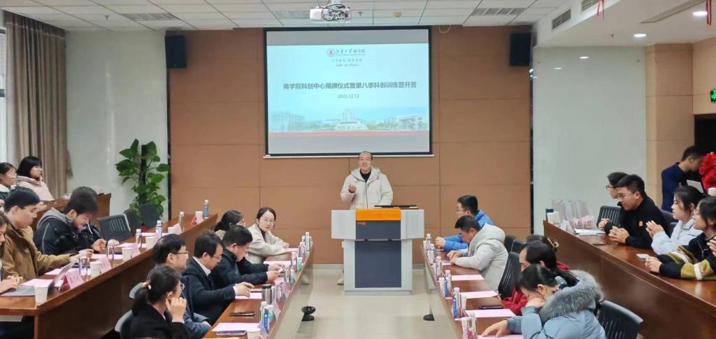 在开营仪式上,刘长青为于海云、尤璞、朱晋伟、李峰、何家凤、汪长玉、徐炜、邢新朋、张泽南9位教师颁发“第八季科创训练营特聘教师”聘书,肯定他们长期以来在商科A类竞赛中屡次取得优异成绩,在提升教师专业团队竞赛能力中起到中坚力量,在提升营员竞赛获奖中做出重要贡献。