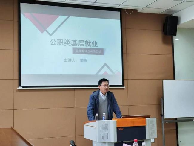 为帮助PA视讯有志考公的同学更好地了解考公的最新形势和政策,把握备考方向,增强备考能力。12月14日下午,公司研究生会于MBA116教室成功举办了公考分享讲座,本次讲座邀请到资深公考职业规划师邹振老师,公司20余名同学参加讲座。