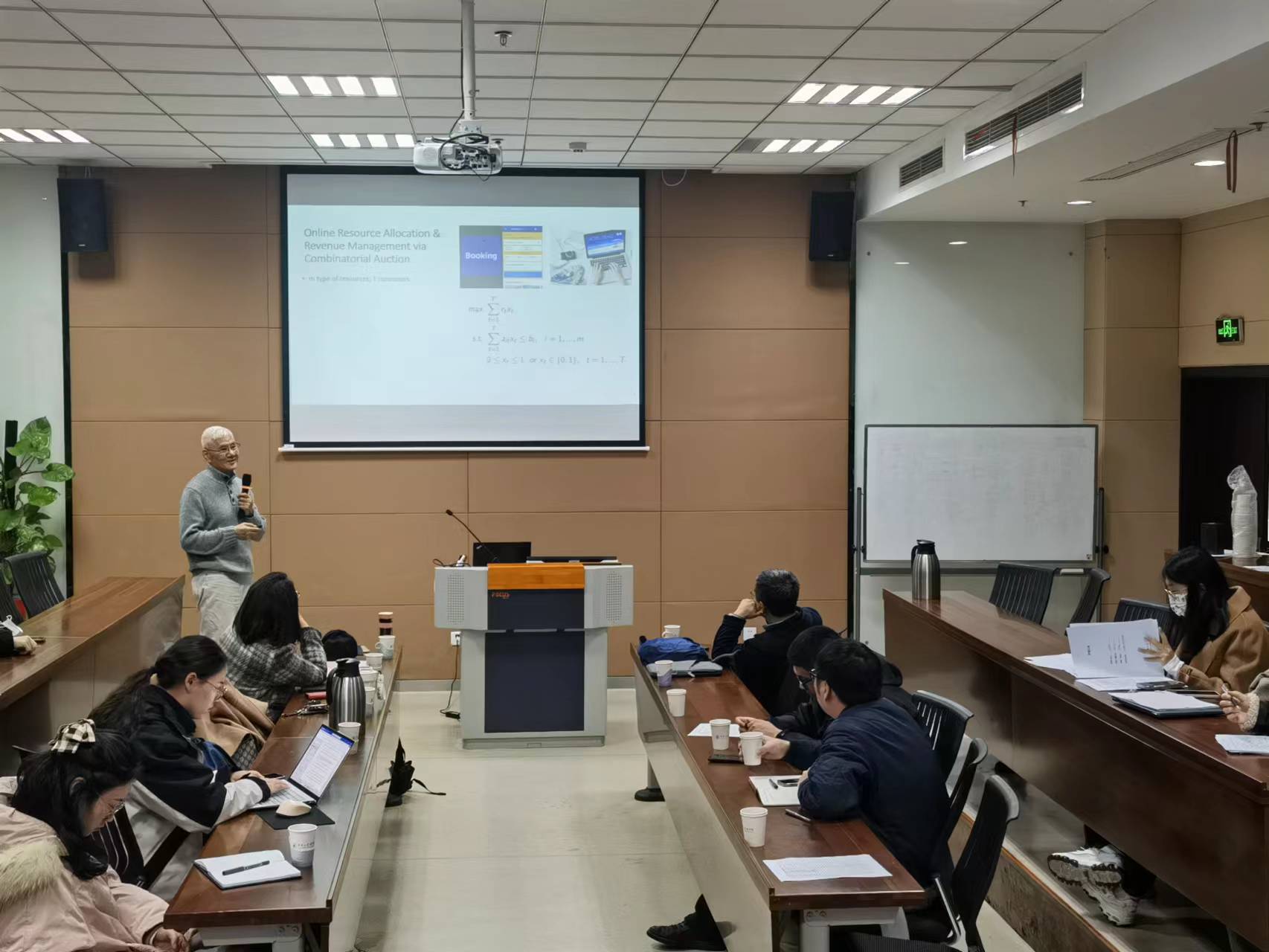 2023年12月29日下午,商学大讲堂系列学术讲座第234讲在PA视讯116东方厅会议室举行。现任斯坦福大学管理科学与工程系及计算数学工程研究院李国鼎讲座教授叶荫宇教授和南京工业大学韩乔明教授应邀分别作题为“竞价市场的在线线性规划学习算法设计与分析”、“点覆盖问题研究”的学术讲座。讲座由管理科学与工程系程郁琨教授主持,PA视讯管工系教师、管理科学与工程、物流工程与管理、工业工程与管理的研究生聆听了本次讲座。