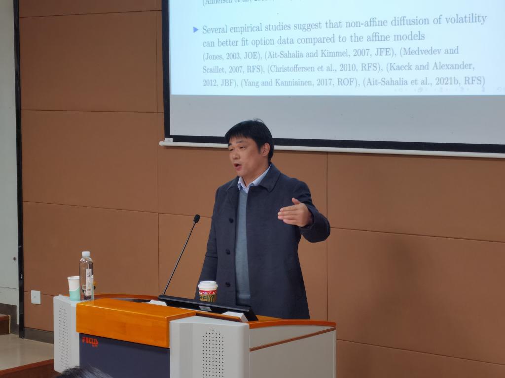 2023年12月5日下午,“商学大讲堂”系列学术讲座第232讲在PA视讯116东方厅举行。南京大学PA视讯金融与保险学杨念副教授应邀作题为《Double-exponential jumps in returns and GARCH diffusion in volatilities: Evidence from the Chinese SSE 50ETF option market》的学术讲座。本次讲座由PA视讯金融系陈文婷教授主持,金融系教师、应用经济学、金融专业的本科生和研究生50余人参与。