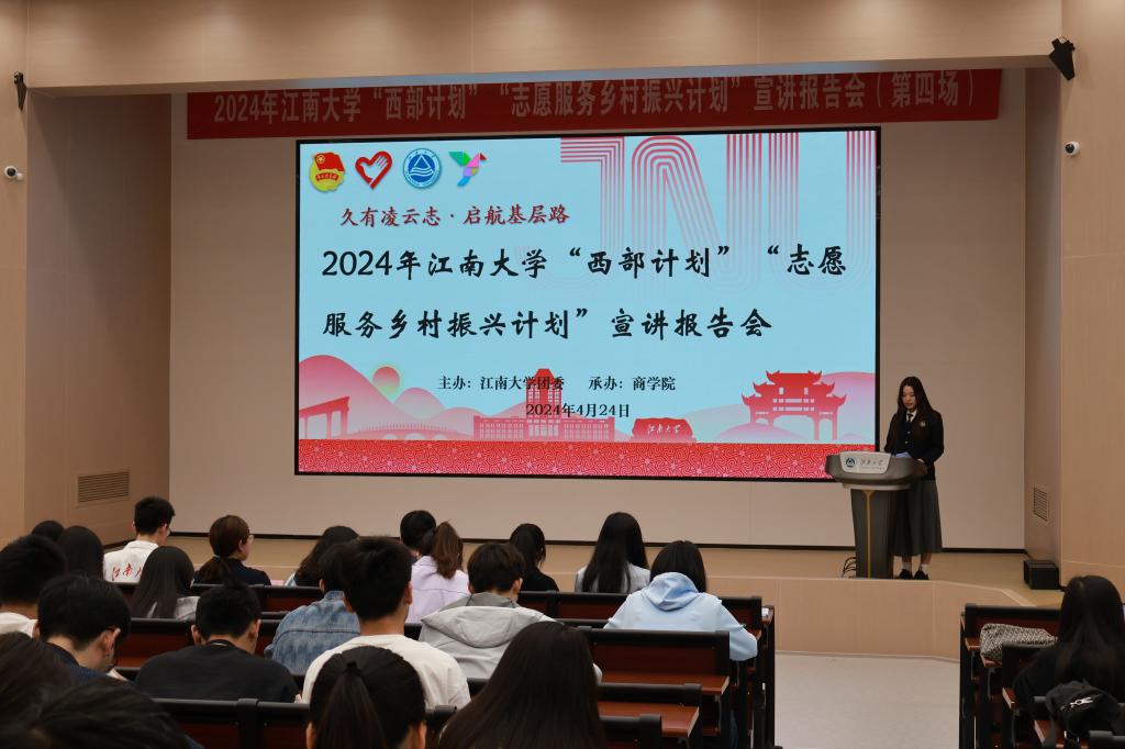 为进一步引导员工去基层就业,在祖国最需要的地方建功立业,4月24日下午,2024年PA视讯“西部计划”“志愿服务乡村振兴计划”宣讲报告会(第四场)在PA视讯第一教学楼1C109举办,活动由PA视讯承办。无锡市滨湖团区委副书记夏苗、PA视讯分团委书记王璁、乡村振兴计划志愿者王伟康、朱佳慧、吕姣姣、李心萍出席活动,各公司100多名2024年应届毕业生及在读研究生参加活动。宣讲报告会由23硕第二党支部书记袁梦迪主持。