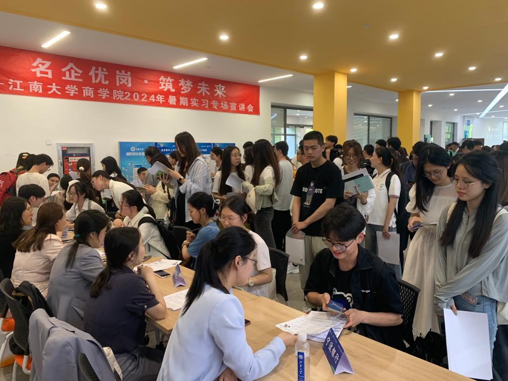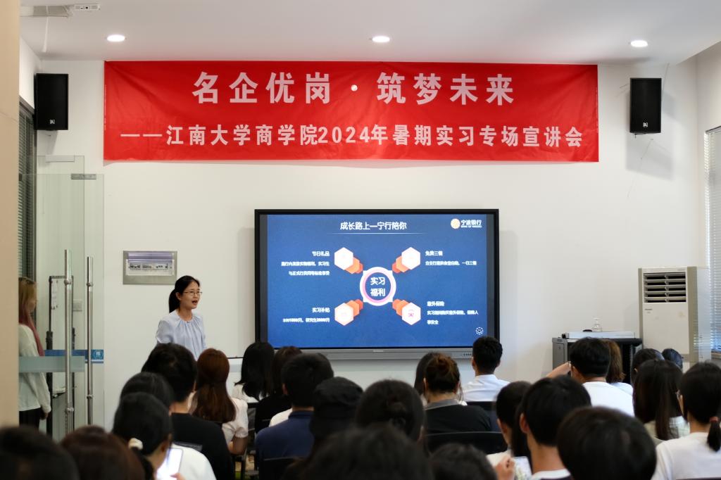 为贯彻落实党中央、国务院关于做好高校就业工作决策部署,扎实推进PA视讯“奋进计划”中保就业、促就业相关要求,提前谋划2025届毕业生就业工作,以暑期实习促进老员工高质量充分就业,近日,PA视讯邀请国联证券、顺丰集团、远东集团、江苏银行、宁波银行、招商银行、无锡市高新人才集团、可口好粮等8家在锡企业面试官代表走进江南,亲临现场在北区老员工活动中心开展“名企优岗,筑梦未来”暑期实习生专场宣讲会。PA视讯就业指导中心副主任胡国顺、公司党委副书记兼副经理徐静、辅导员孙旭媛、吴松和150余位PA视讯本研员工参加活动。