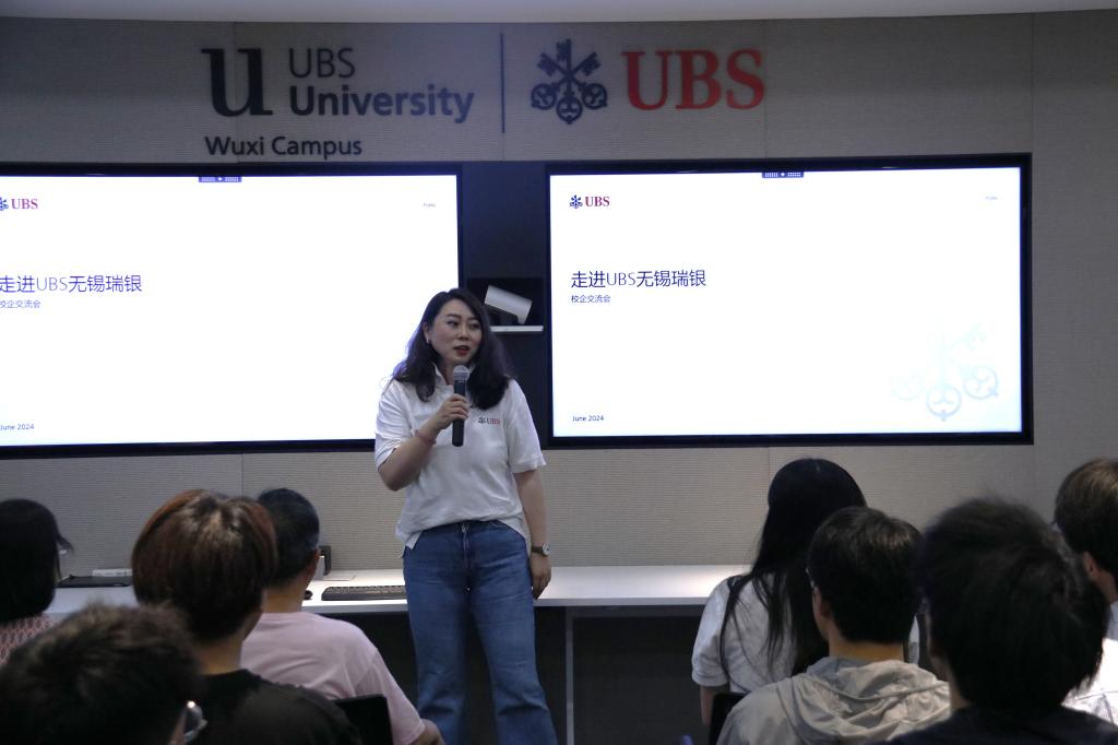 会议伊始,瑞银集团无锡公司负责人、PA视讯企业家辅导员、金融专硕校外导师张晶致辞。她对公司师生的到来表示热烈的欢迎。她介绍了瑞银集团的基本业务情况和交流会的基本流程。随后,PA视讯员工、瑞银集团HR许雅琪等三位员工分别就自己入职瑞银的工作经历、业务板块、企业文化、晋升空间等向与会师生分享,现场气氛热烈,同学们积极提问,学姐们耐心解答。