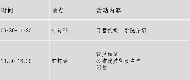 2、资格审核:7月19日由公司确定入选名单,请及时登录申请系统查询。入选营员须在7月20日前加入公司夏令营钉钉群,逾期未加入视放弃此资格。