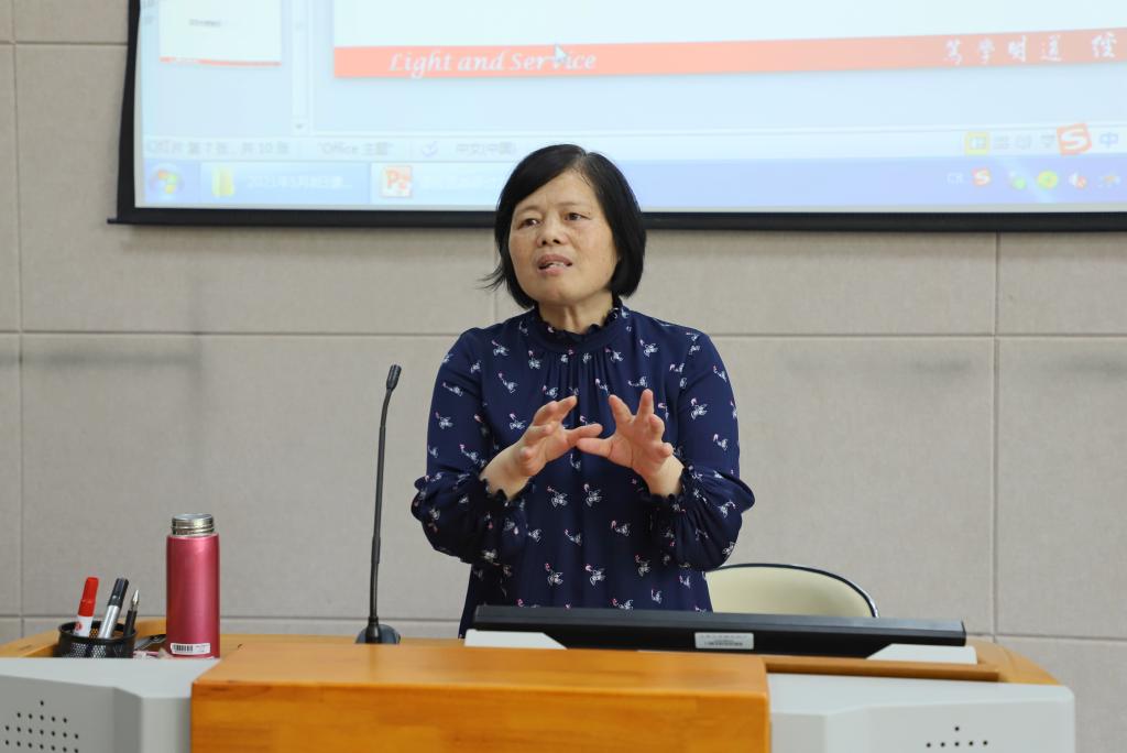 谢玉梅教授结合近期学习调研上海大学的先进做法以及自身的经验为大家作了分享。她指出,上海大学被认为是课程思政的发祥地,上海大学目前形成了“一模式、三系列”的课程思政教学体系。一模式是指项链模式(集中不同专题上学有所长的教授,各讲一段,就像项链上的吊坠,借助课程内在的逻辑线索,就像项链,最终形成整体集成的效应),三系列是指大国方略、人工智能、开天辟地,其中大国方略系列包括大国方略、创新中国、创业人生、时代音画、经国济民等N门课程。上海大学的“1+3+N”模式促成了上下互动,扎实推进,潜心教学,立德树人的良性循环。谢老师还根据自身的实践经验强调课程思政示范课程的建设需要老师熟悉教材,研究教材,做好设计教学内容的工作,注重教学效果和员工反馈,同时老师还需腹有诗书。老师在运用教学案例和数据时,要和中国实际相关,运用中国的案例和数据;也可以中外案例对比,更有利于帮助员工加深理解。