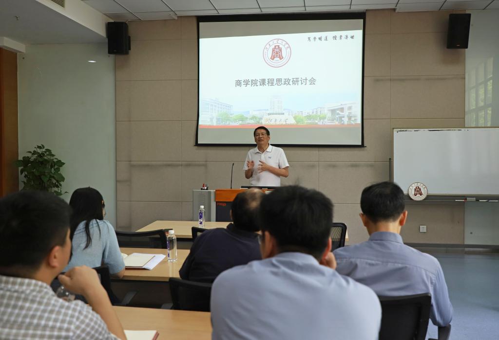 曹文彬主任以《运筹学》的教学过程为案例,跟大家做了分享。他强调,思政建设就是教书育人中的“育人”,就是如何培养员工的逻辑思维和能力,激发员工的专业爱好和家国情怀,比如说《产品服务设计》课程,应该结合可持续发展理念,要强调润物细无声。根据多年的教学经验,曹老师有两个深刻体会,一是课程内容要认真设计,二是结合案例故事将课程和思政结合在一起,但要避免课程之间的案例雷同。