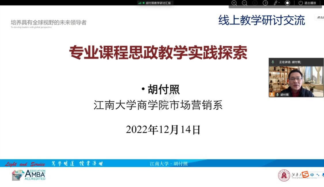 12月14日下午,由PA视讯主办的专业课程思政教学实践研讨会在企业微信线上会议成功举办。研讨会邀请市场营销系副教授胡付照主讲。来自公司的系部主任、青年博士教师、硕士生、本科生等近30人线上参与研讨。