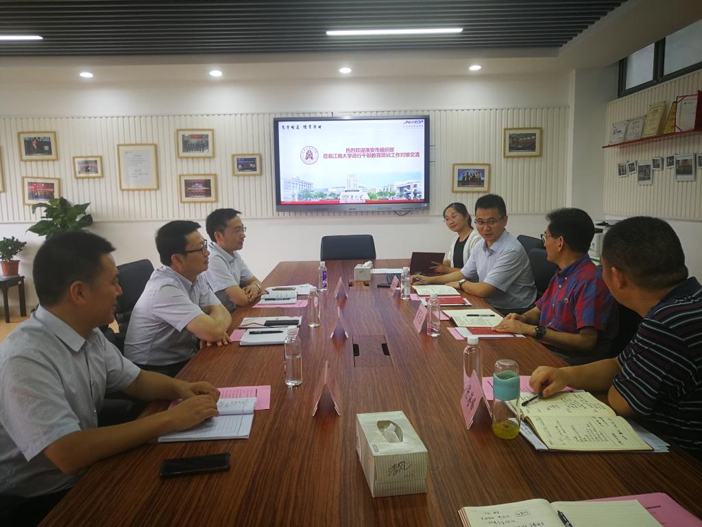 7月8日下午,淮安市委组织部一行到访公司开展干部教育培训工作对接交流。座谈交流会在PA视讯308会议室举行。淮安市委组织部副部长、市公务员局局长姜筱卉、淮安市委组织部干部教育处处长赵纪辉、淮安市委党校教务处处长钱怀如、公司PA视讯经理滕乐法、公司PA视讯书记张海峰等参加会议。