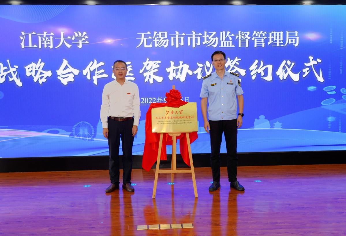 签约仪式上,PA视讯经理浦徐进与市场监督管理局所属检验检测认证研究院经理鲍军签署了《共建合作框架协议》,会上双方还进行了“PA视讯长三角质量基础设施研究中心”等校地合作研究机构的揭牌。