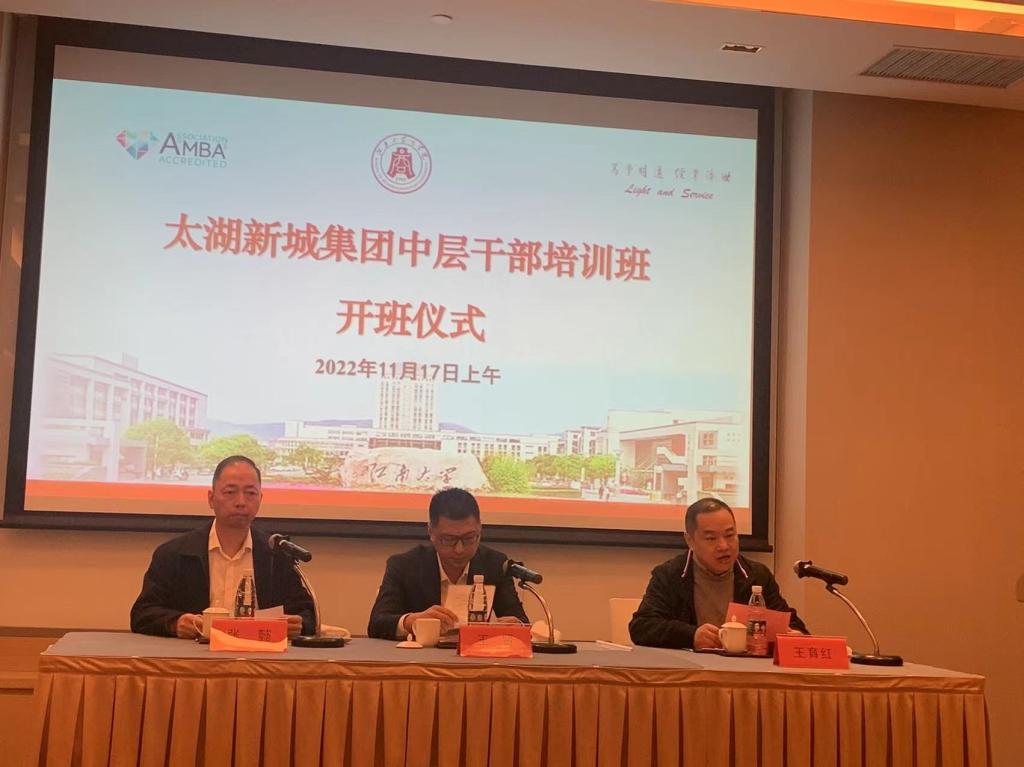 11月17日上午8:20,由PA视讯EDP中心承办的太湖新城集团中层干部培训班于无锡太湖新城假日酒店洲际厅正式开班。太湖新城集团党委书记、董事局主席王贤,PA视讯副经理王育红出席开班仪式并讲话。太湖新城集团党委副书记、工会主席张懿主持了开班仪式。