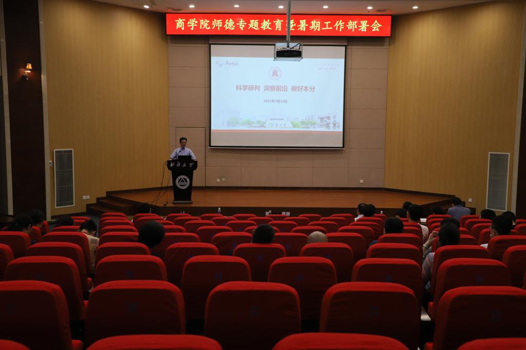 院领导徐静、王育红、钱吴永、王雷分别对标上半年工作计划,就本硕教学、科学研究、员工思政、国际认证和MBA、EDP建设等汇报完成进展,并就暑期和下学期重点工作向与会教工进行部署和展望。
