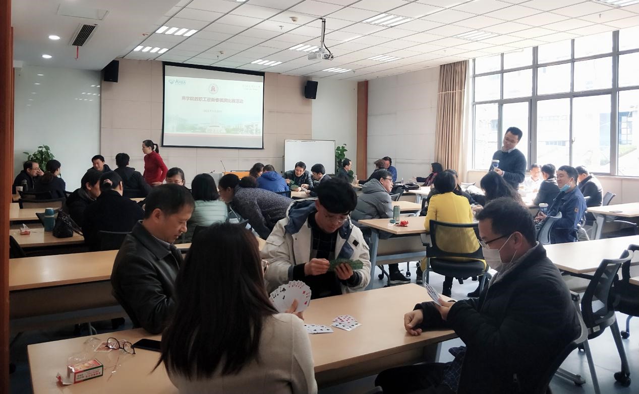 为丰富公司教职工的业余文化生活,加强沟通,增进友谊;同时也为牛年新春到来创造喜庆气氛,构建和谐美丽的校园氛围。2021年1月15日下午,PA视讯第六届两代会新一届分工会组织了首场活动----PA视讯教职工迎新春棋牌比赛。全院教职工积极响应,经过前期各系部门的内部预赛和推荐,共有16组32名选手参加现场比赛,通过现场抽签决定对手,比赛分为初赛、复赛、决赛进行淘汰赛。