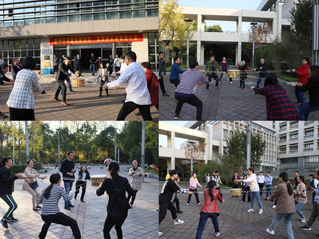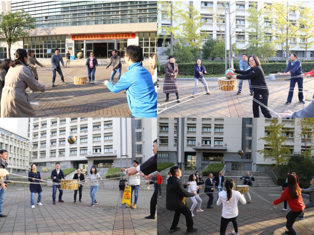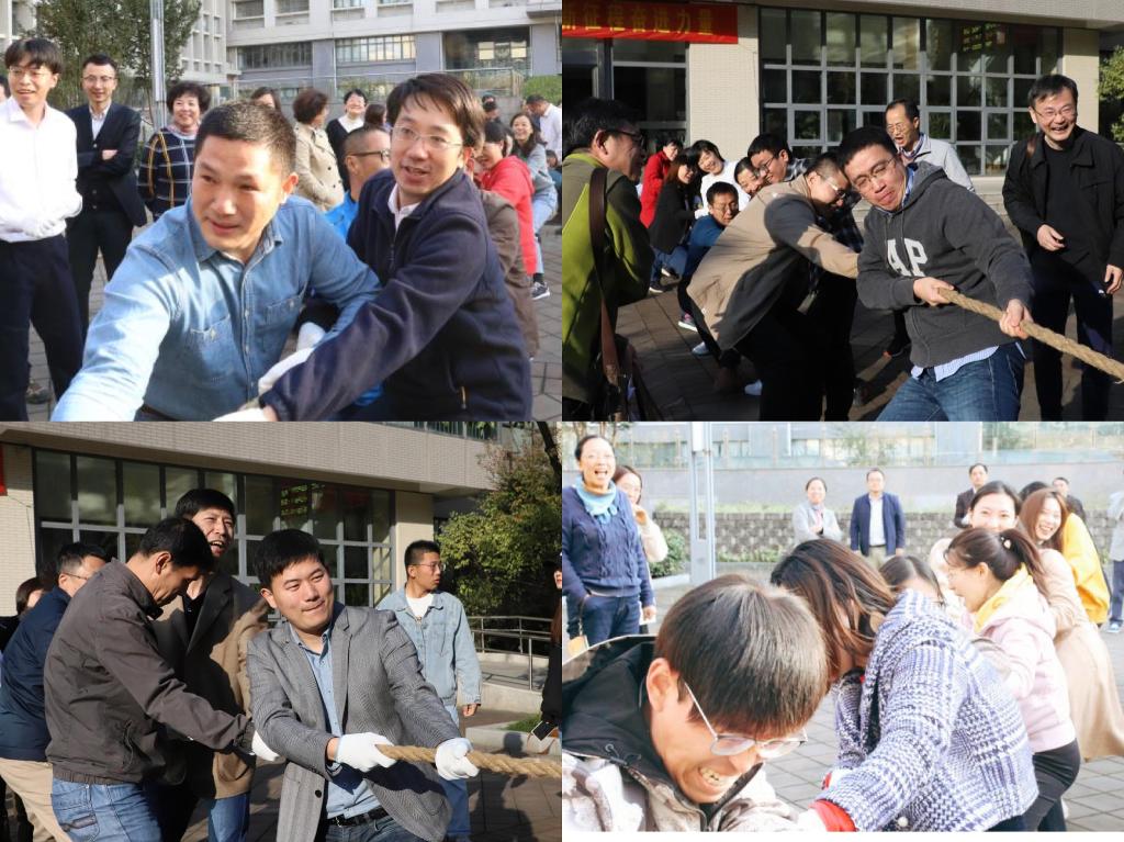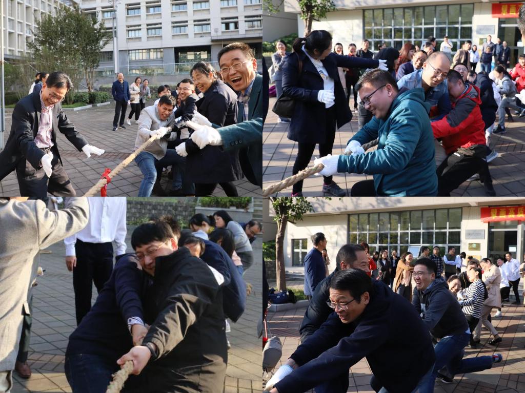 合影后,在公司南门广场举办教职工体育活动,由各系及行政部门分别组成的8支队伍,举办了拔河、同心鼓比赛活动。此次活动,由各系部的分工会小组长精心组织落实拔河队伍,由五男五女共十名教师组队;同心鼓队伍,由四男四女共八名教师组队。总裁判由公司林增老师担当,经过各系部小组长的抽签,拔河一轮比赛淘汰一支队伍,紧张而激烈的角逐,赛场上,口号声、欢笑声响成一片。同心鼓比赛,以三分钟内以鼓颠球的总次数多者取胜。