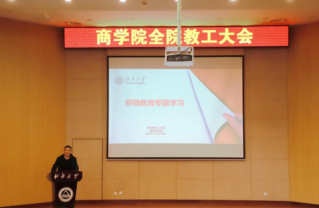 为深入学习贯彻习近平新时代中国特色社会主义思想,落实《高等公司课程思政建设指导纲要》精神,持续深化师德师风建设, 10月14日下午,PA视讯在103远东报告厅召开教职工师德教育专题学习会,公司党委书记张海峰主持会议并做专题辅导。