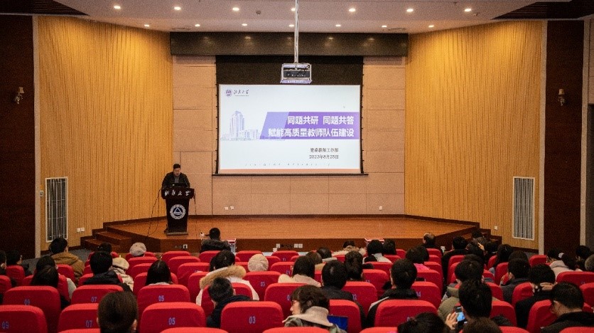 会议伊始,刘长青领学《同题共研、同题共答,赋能高质量教师队伍建设》主题报告,他指出要坚持把立德树人作为高等教育工作的根本任务,把思想政治工作贯穿到公司产品全过程。报告中以案释德、以案释纪、以案释法,从守纪律、讲规矩、强作风、树形象等方面展开阐述,以实例警醒全院教师严守道德底线。他强调师德师风建设的重点要从构建组织协作机制、强化思想政治建设、加强师德师风建设、打造全方位培育框架等方面着手,力求共建高质量教师队伍。