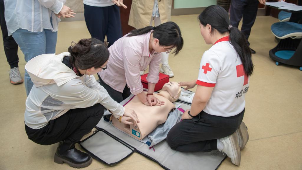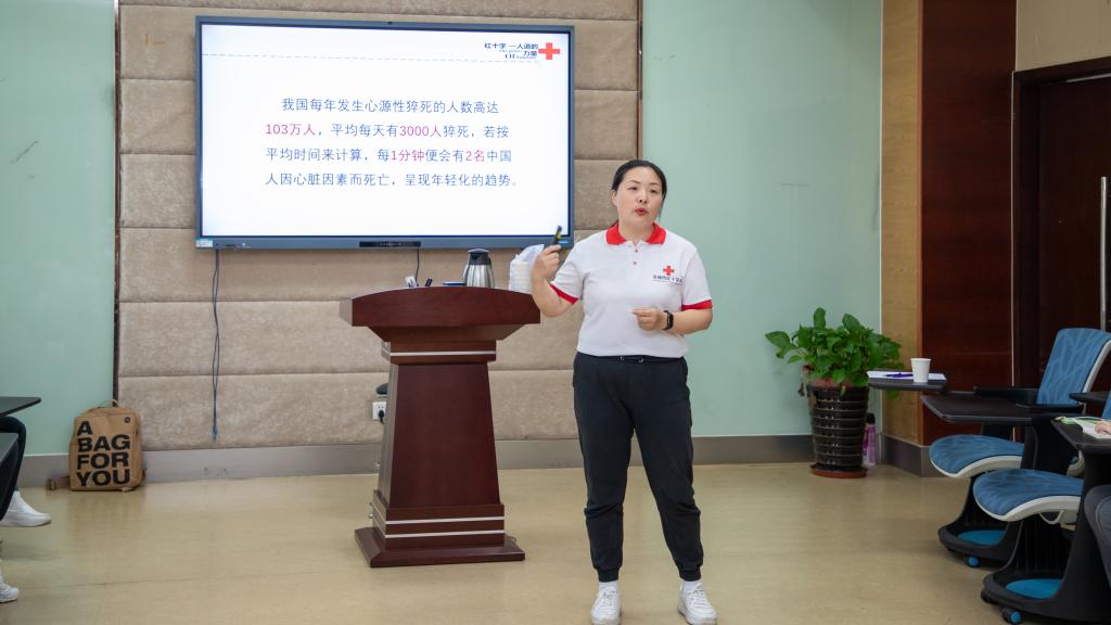 夏日初至、万物竞发,PA视讯校园生机勃勃。5月16日下午,在PA视讯校医院的大力协助下,24位教师在PA视讯117教室参加了由无锡市红十字会举办的“救在身边”应急救护培训。红十字会的应急救护培训讲师谈晓颖具备丰富的急救经验,她用一系列生动的动画视频,揭秘了心肺复苏的科学原理,以及黄金四分钟内为大脑和心脏供血的至关重要性;她通过无锡市马拉松现场急救的真实视频,展示了自动体外除颤仪(AED)在挽救生命方面的“超能力”;她用一段儿童吃樱桃堵塞气管的真实录影展示了慌乱的家长如何用海姆利克急救法成功救助孩子的惊心一刻,令人印象至深。