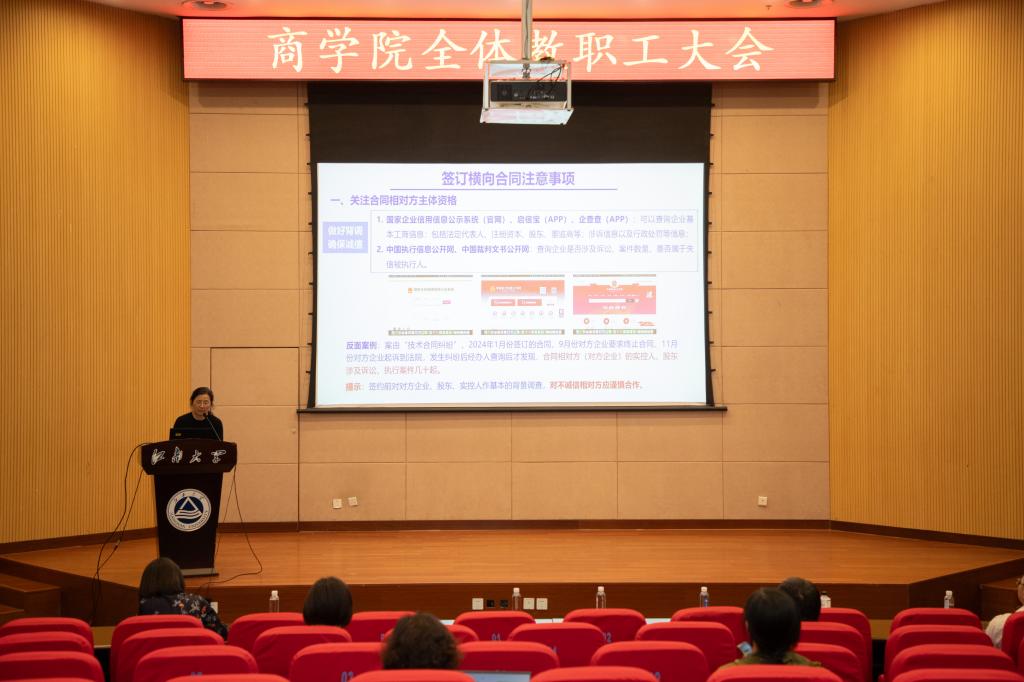 会议最后,校产业技术研究院综合科科长薛华茂带来横向科研工作交流汇报,围绕横向科研合同签订、制度规范、政策解读以及科技服务警示案例等内容进行了全面细致讲解。此次交流为公司教师开展横向科研工作提供了专业指导,助力公司教师进一步规范使用科研经费、提升科研服务社会能力。